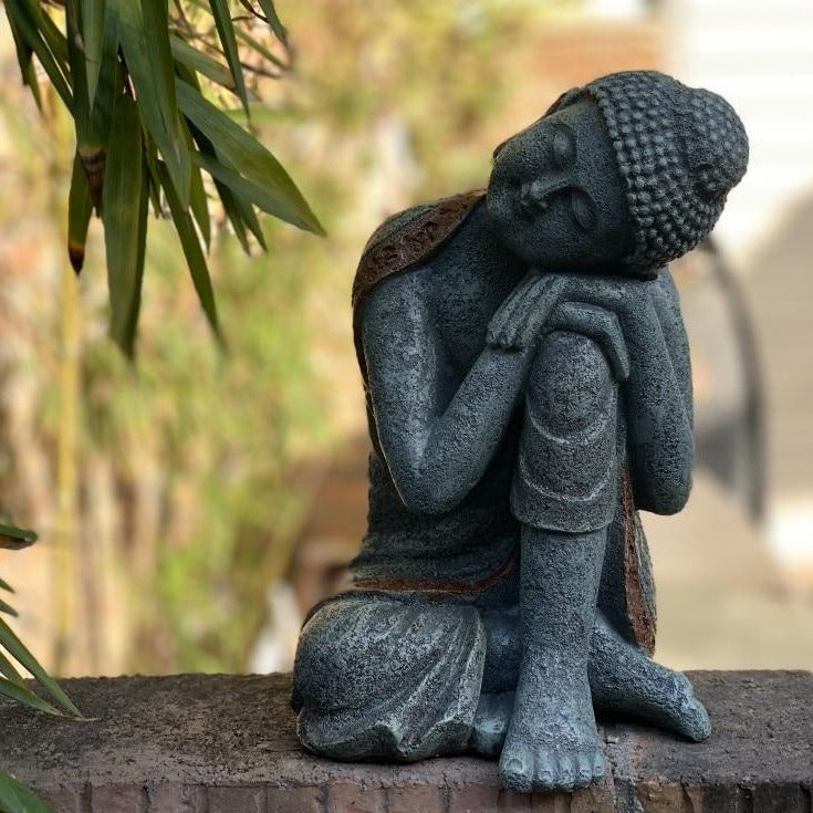 Découvrez cette ravissante Statue Bouddha parfaite pour l'Extérieur. Confectionnée artisanalement avec de la Résine, elle créera un environnement de paix et de bien-être autour de votre maison.