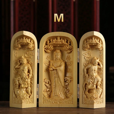 Cette statue est le fruit d'un artisanat méticuleux, où chaque détail est sculpté à la main par des artisans expérimentés. Les techniques de sculpture sur bois de Sansheng occidental sont reconnues pour leur finesse et leur capacité à capturer l'essence spirituelle des figures représentées. Chaque pièce est unique, reflétant l'engagement et la passion de l'artisan.